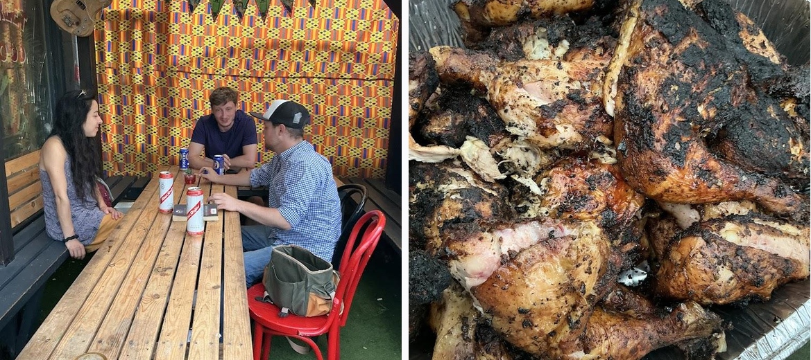 Stopped for a quick lunch, excellent food and vibes. Goat curry and jerk chicken were great sized portions and delicious. Nigel was explaining how much they do for local community projects which was really great. Will definitely be coming in the evening in the future to sample it in full swing